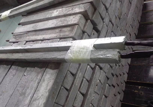我公司生產(chǎn)的鋅接地電池由平行靠近的一對(duì)或四支鋅合金犧牲陽(yáng)極棒組成,中間用絕緣墊塊隔開(kāi),然后一起裝在裝有填包料的棉布袋中,通過(guò)引出電纜焊接在絕緣裝置(絕緣接頭或法蘭)的兩側(cè),以防止強(qiáng)電沖擊引起的損壞,同時(shí)日常情況下接地電池也可對(duì)管道起保護(hù)作用。